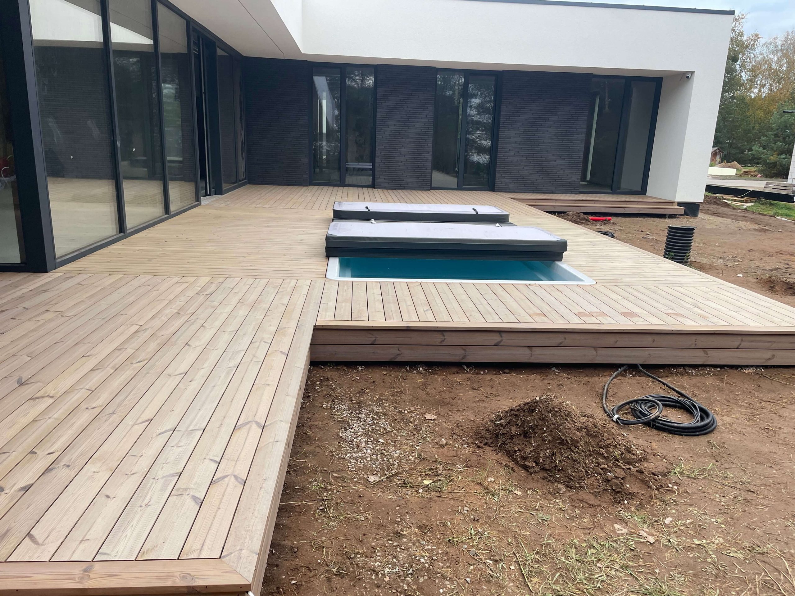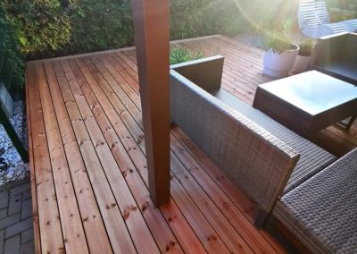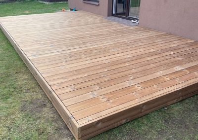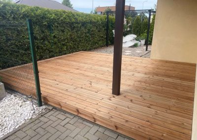 Mes naudojame pažangią paslėptų tvirtinimų sistemą, kuri leidžia montuoti terasos lentas be matomų sraigtų. Tai suteikia terasai švarų, modernų ir elegantišką vaizdą.