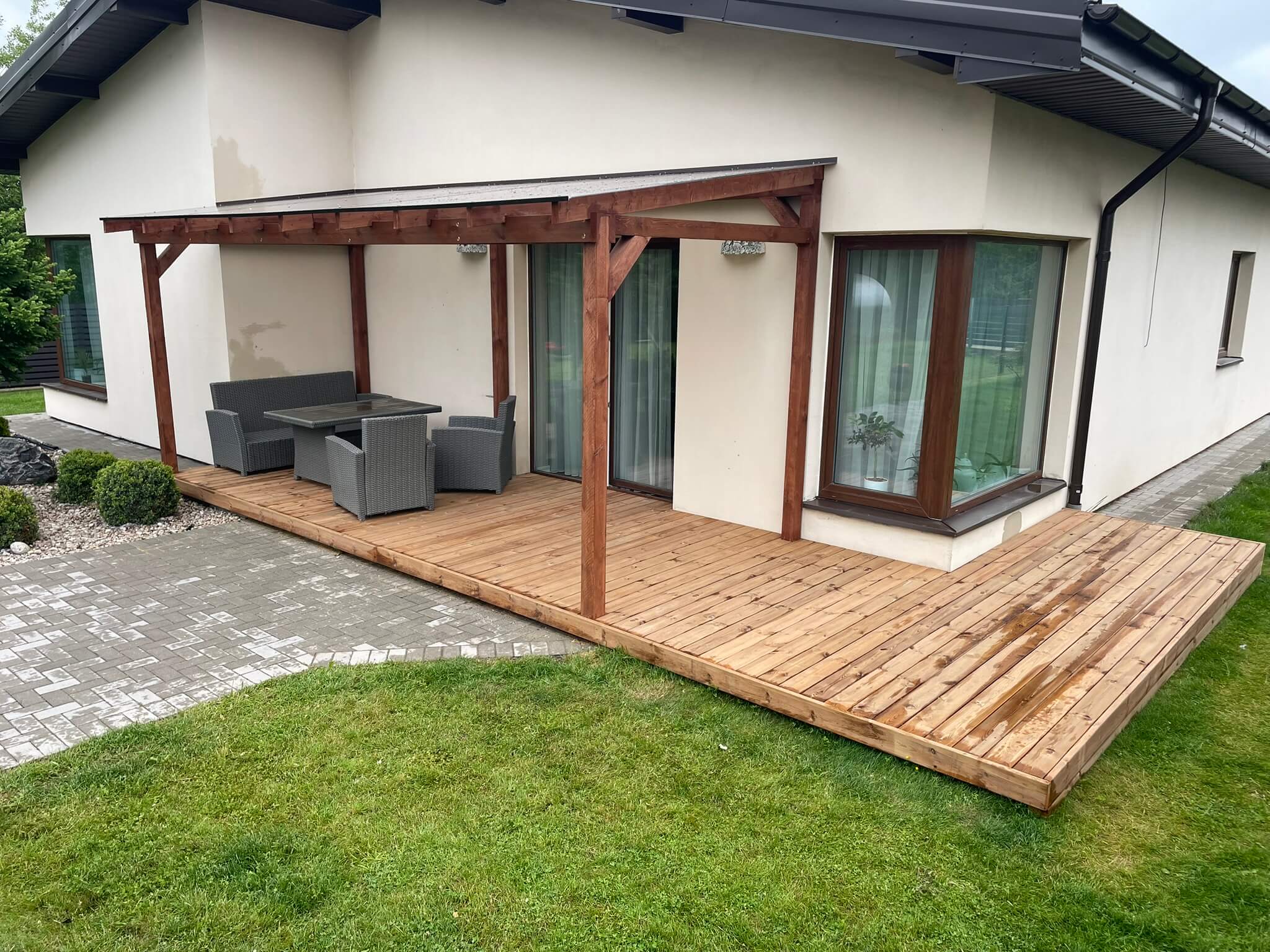 Individualiai pagaminta stoginė ar pavėsinė bus tiksliai pritaikyta jūsų lauko ar terasos matmenims ir formai.